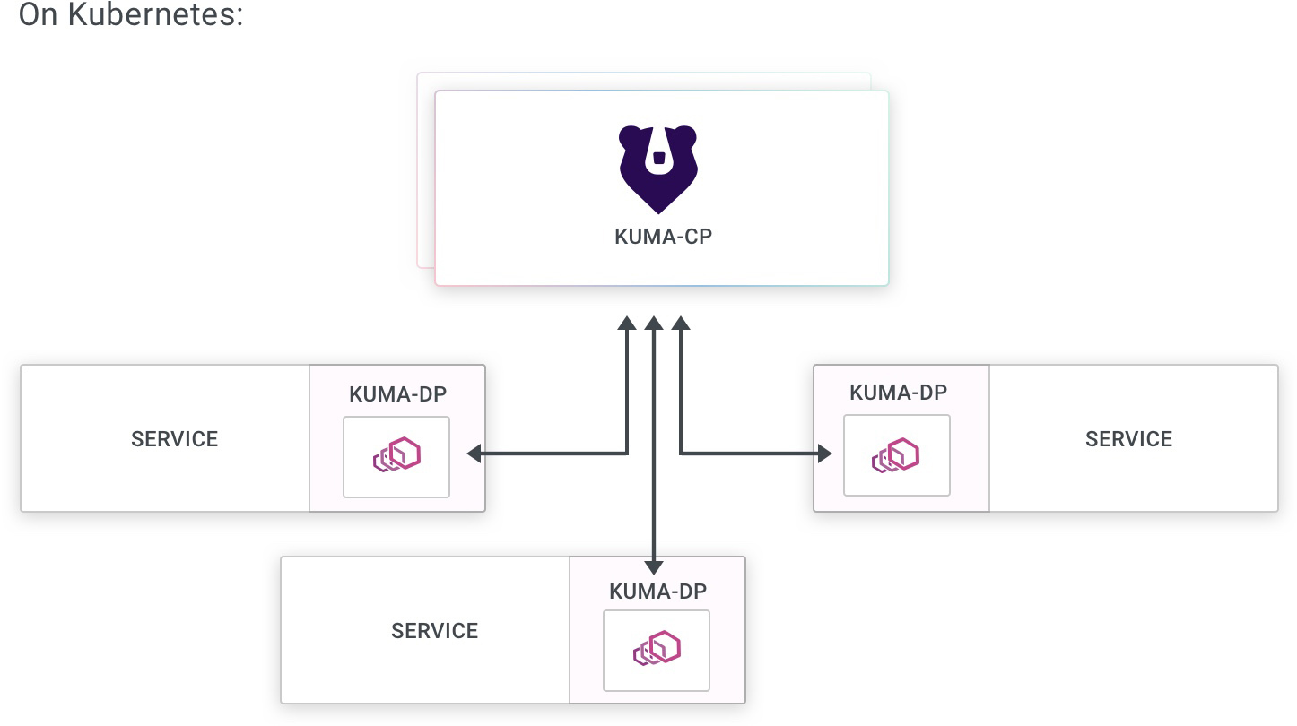 A minimal Kuma deployment involves one or more instances of the control plane executable, kuma-cp.