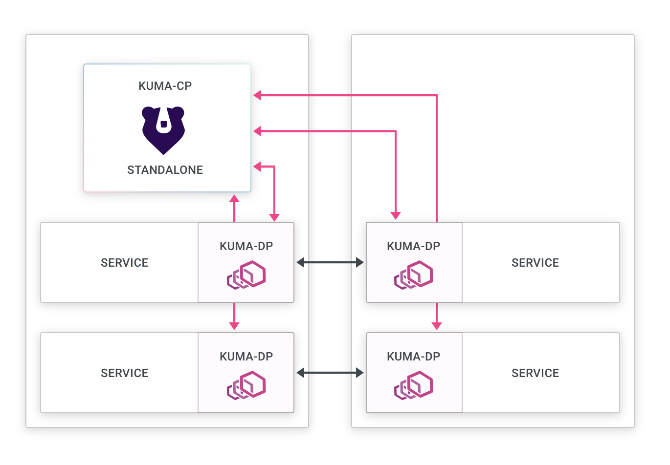 This mode implies that we can deploy Kuma and its data plane proxies so that the service connectivity from every data plane proxy can be established directly to every other data plane proxy.